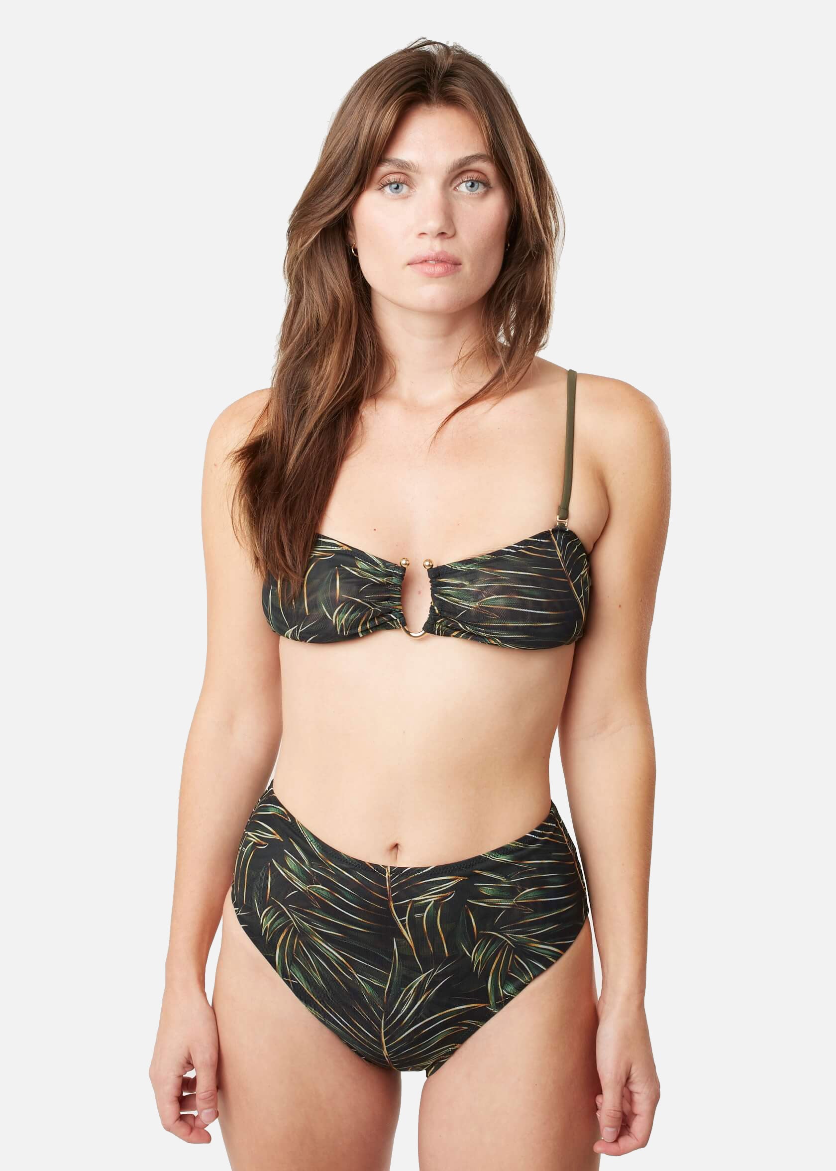 Letar du efter en chic och trendig bikinitopp till sommarens äventyr? Denna bikinitopp för dam kombinerar komfort och stil i ett underbart tropiskt bladmönster. Med smala, justerbara och avtagbara axelband och en feminin detalj framtill med ett dekorativt spänne, ger den här bikinin dig både stöd och ett stilrent intryck.